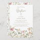 Celebre un momento sagrado y especial con nuestra atractiva invitación al bautismo, con flores silvestres de color suave y mariposas. En delicados y suaves tonos pastel, esta invitación da un tono sereno y sincero al bautismo o el bautismo de su pequeño. Perfecto para reuniones de primavera o jardín, cada carta combina elegancia intemporal con un toque de encanto natural. Las floridas obras de arte rodean los detalles de tu evento personalizado, creando una agradable y memorable primera impresión para tus invitados.