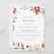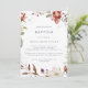 Esta sencilla invitación al bautismo floral es perfecta para un bautizo rústico. El original diseño de boho presenta flores rústicas de color rosa rosa, burdeos y marsala con un tono romántico y monótono.