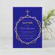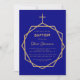 Invitación Bautismo Geométrico Niño en Oro Moderno sobre Azul
