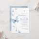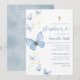 Invitación al bautismo Minimalista con mariposa azul y dorada