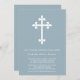 Invitación al bautismo de personalizable con una cruz blanca sobre un polvoriento fondo azul.