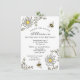 Flores amarillas y blancas y abejas amarillas ocupadas decoran este bautismo y fiesta de cumpleaños. Único bautismo floral dulce a mano y fiesta de primer cumpleaños con abejas. Cuadro de texto opcional en el respaldo (deje en blanco si no lo necesita)!