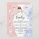 Esta invitación al bautismo católico para una niña tiene un lindo ángel, flores blancas y un suave fondo acuarela. Español / Español: Celebra el Bautizo de tu hija con esta invitación.