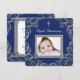 Elegante invitación de bautizo gris y azul marino para niños con foto. Esta hermosa invitación de bautizo gris y azul marino se personaliza fácilmente para su evento agregando su foto y detalles del evento, estilo de fuente, tamaño y color de fuente, y redacción.