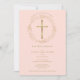 Invitación Bautizo Bautismo Rosa Oro Cruz Floral