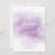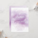 Diseño de bautizo con acuarela púrpura delicada y flores blancas & una cruz blanca. Dale la vuelta a nuestra invitación para ver un dorso a juego para un toque extra especial.