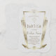 Invitación de Bautizo con Monograma Art Déco Blanco Dorado Real.