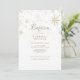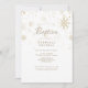 Con delicados copos de nieve dorados que caen sobre su nombre personalizado, fecha especial y detalles del evento de bautizo o presentación. Diseñado por Thisisnotme©