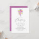 Invitación de bautizo floral morado en acuarela con tipografía manuscrita diseñada para ser personalizada rápida y fácilmente según los detalles de su evento.