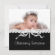 Invitaciones de bautizo de cruz de perla en negro y blanco. Personalice con su foto y detalles del evento en el estilo de fuente de su elección.