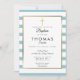 Invitación Bautizo de Cruz Dorada de Rayas Azules, Bautizo