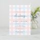 Celebre el bautizo de sus gemelos con esta clásica invitación de bautizo a cuadros. El diseño presenta un patrón a cuadros clásico combinado con una tipografía elegante de estilo manuscrito, creando un aspecto tradicional y encantador para esta ocasión especial.