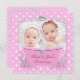 Plantilla bonita y elegante de bautizo de niña gemela con lunares rosados y flores plateadas y blancas