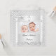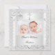 Plantilla de bautizo de gemelos niña y niño plata floral blanca metálica bonita y elegante