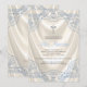 Invitaciones de bautizo de niño en marfil y azul con elegante cruz plateada sobre un hermoso fondo de satén marfil, invitación de bautizo y presentación de niño. Esta invitación de bautizo en marfil y azul se personaliza fácilmente para su evento agregando los detalles del evento, estilo de fuente, tamaño y color de la fuente, y redacción.