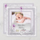 Agregar foto, zapatos de Biblia, cruz de lila rosa, bautizo de niña, plata, blanco, floral, plantilla bonita y elegante