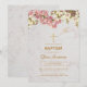 Invitación Bautizo de niña floral orquídeas rosadas cruz dora
