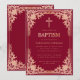 Invitación Bautizo de Niña Rosa Rojo Oscuro Cruz Dorada Vinta