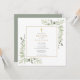 Con delicadas hojas de acuarela y un elegante crucifijo dorado, esta elegante invitación de bautizo/confirmación neutral en cuanto al género puede personalizarse con su información especial, con un fondo de salvia plateada en el reverso. Diseñado por Thisisnotme©