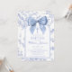 Esta bonita invitación de bautizo presenta un elegante lazo azul y tipografía elegante con un fondo floral. Diseñado por Thisisnotme©