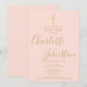 Invitación Bautizo Moderno Dorado Script Rosa Beige