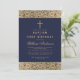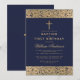 Invitación Bautizo Primera Cumpleaños Azul Marino Rosas Dorad