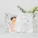 Bonita invitación de bautizo de bebé princesa de pelo oscuro con flores vintage rosas y grises. Esta linda invitación de bautizo de bebé vintage rosa se personaliza fácilmente para su evento agregando los detalles del evento, estilo de letra, tamaño y color de letra, y redacción. Puede mover al bebé y la cruz según sea necesario, así como el texto del bautizo.