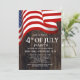 Invitación BBQ rojo blanco y azul fuego de 4 de julio Fiesta