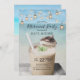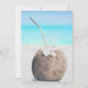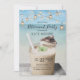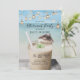 Una invitación a una fiesta de retiro de playa, con un tema de playa con cóctel tropical contra el agua azul y bonitos colgando luces de cuerda.