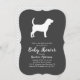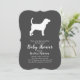 ¡Incluya al hermano mayor o al bebé de piel de hermana en la celebración con este adorable diseño de ducha de bebé beagle! Perfecto para un amante de los cachorros con un bebé en camino. El Beagle se encuentra al lado de un adorable cochecito vintage. El fondo gris de la pizarra lo convierte en un lugar perfecto para una ducha de matrimonio o una ducha de matrimonio.