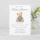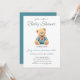 Oso con la invitación a la ducha de bebé con camisa azul. Genial por ser un niño.