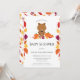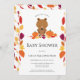 Una invitación a la ducha de bebé con calabaza para oso con un oso lindo y tres calabazas con coloridas hojas de otoño. Simplemente personalizar el texto, agrega estas invitaciones a tu carrito y ten una maravillosa ducha para bebés. Diseño de vacaciones de la calabaza de la Baby Shower de la invitación del Oso Fall | ©Melissa Patton - Artista/Ilustrador