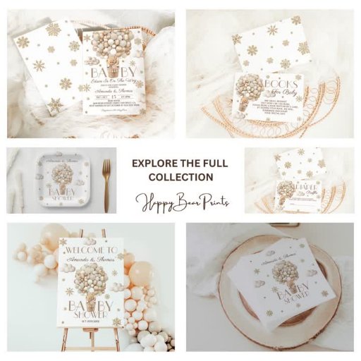 Oso de peluche con temática invernal y copos de nieve con ducha de bebé neutra de género