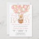 Celebrate the arrival of your little one with this whimsical baby shower invitation featuring a sweet teddy bear lifted by pastel balloons. The soft pink, peach, and cream tones create a dreamy and joyful design perfect for honoring expectant parents. This charming card is ideal for baby girl showers, blending playful illustration with elegant style to delight guests and set the tone for a memorable celebration.
