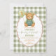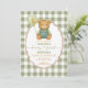 Invitación al globo de calabaza de primer cumpleaños de Cute Beary editable Sage Green Gingham