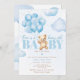 Cuidado bebé lindo en la forma en que el globo de osito de peluche azul Invitación Artículos coincidentes disponibles.