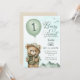 ¡Celebra el primer cumpleaños de tu pequeño cachorro con esta invitación de Beary Sweet con temática de bosques! Este diseño verde pastel, con un oso suave en una capucha y una gorra sosteniendo un suave globo verde con el número "1", aporta suaves vibraciones de bosque con montañas acuarelas, pájaros y un ambiente acogedor al aire libre. Perfecto para bebés o celebraciones sin distinción de género, esta invitación es fácil de personalizar con los detalles de su fiesta. Totalmente personalizable Suave tonos verdes y detalles de acuarela rústica Ideal para fiestas forestales, de bosques o con temas de oso Ideal para imprimir o enviar digitalmente ¡Haz que el momento hito de tu hijo sea extra especial con esta adorable invitación de oso!