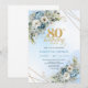 Invitación Beautiful 80th Birthday Invitation Gold Frame Blue