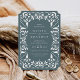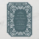 Elegantes invitaciones de bodas vintage en un verde bosque rico presentan detalles ornamentales que evocan el aspecto de papel cortado en un estilo de papel picado. Seleccione la forma Ticket para complementar la forma única de los detalles de estilo deco.