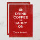El juego divertido en palabras del vintage británicos "guarda calma y continúa" los posters de la propaganda de WWII, alguna gente se ocupa de su tensión bebiendo el café y las bebidas caffeinated, como se muestra por este "café de la bebida y continúa" mercancía del diseño.