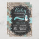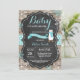 Bebé, es frío fuera de la invitación de Baby Shower Rustic Winter Penguin. Auqa Snowflake. Fondo de pizarra de madera rústica. Barn Retro de la Vintage del País. Invitación a Baby Shower de chico o Chica. Invitación Baby Shower de feriado de invierno. Los copos de nieve de Aqua y White. Para una mayor personalización, haga clic en el botón "Personalizar" y utilice nuestra herramienta de diseño para modificar esta plantilla.