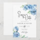 Invitación Bebé Blue Light Floral Blue Floral Leaves Salvando