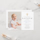 Invitación al bautismo de foto de niño con guión azul.