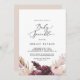 Esta invitación a la rociada de hierba de boho pampas es perfecta para una ducha de bebé de verano. El diseño de la acuarela floral incluye flores bohemias de color burdeos y rosas rubias con brotes de pampas neutras y hojas de palmera doradas secas.