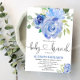 Invitación Bebé brunch niño ducha azul floral acuarela