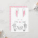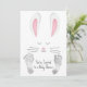 Cara de conejo con orejas rosas y huellas de recién nacido para la ducha de bebé.