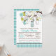 Verde azulado / Turquesa, verde y marrón, jarrones colgantes de albañil, floral, pájaros y árbol. Imagen de Gingham. Perfecto para una alegre ducha de bebé o novia, o para una invitación de cumpleaños o cena.