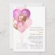 Glitzy ducha de bebé de larga distancia o de novia por invitación por correo con globos de confeti rosa y purpurina de oro.