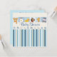 Invitación Bebé de animales y Stripes Azul Baby Shower
