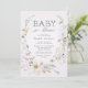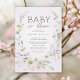 Invitación a la ducha de flores silvestres Baby In Bloom Esta elegante invitación incluye delicadas flores silvestres acuáticas y letras manuscritas.